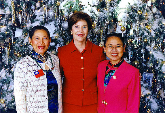 Left-Right : Mei-Yin Chan Chen, Mrs. Laura Bush and Mei-Kuei Chan Cruise